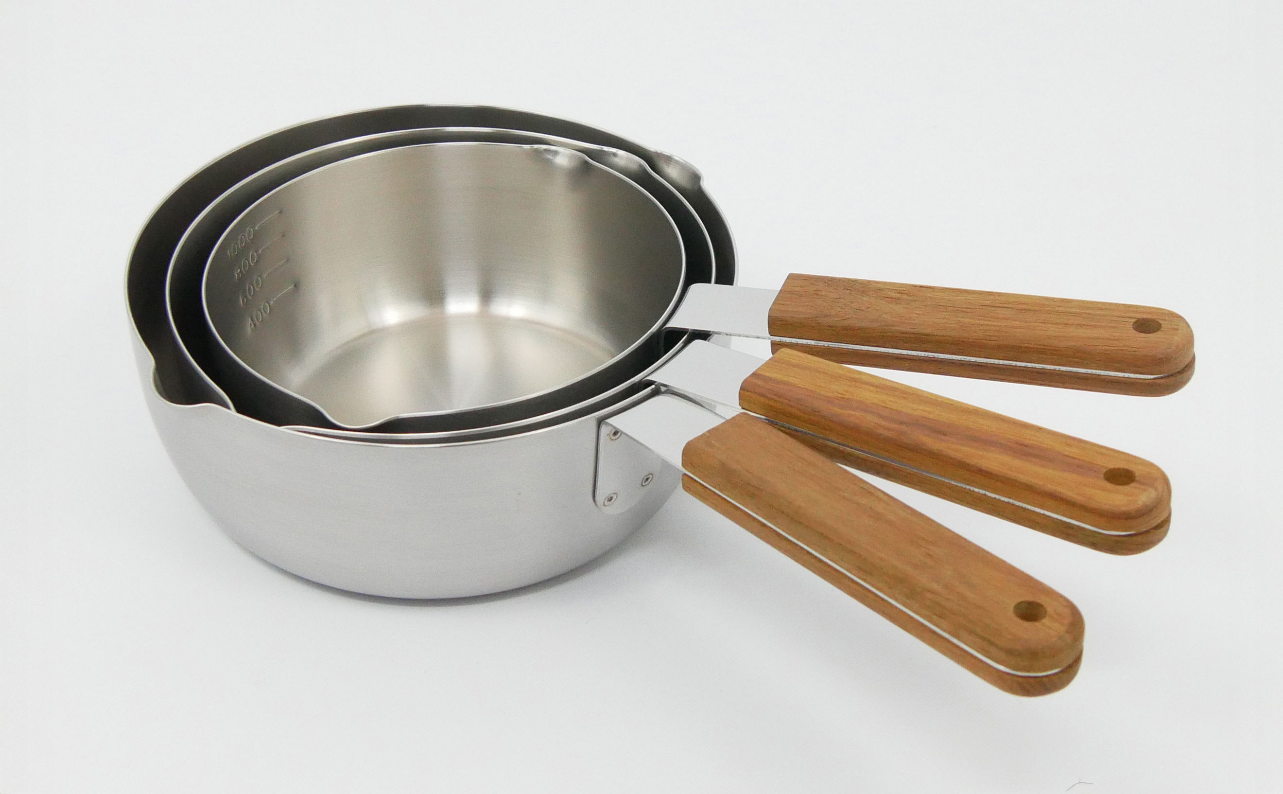 薄く仕上げられていて、サイズ違いをきれいにスタッキングできます。コンパクトに収納できるので、収納スペースに悩むキッチンにもぴったりです。