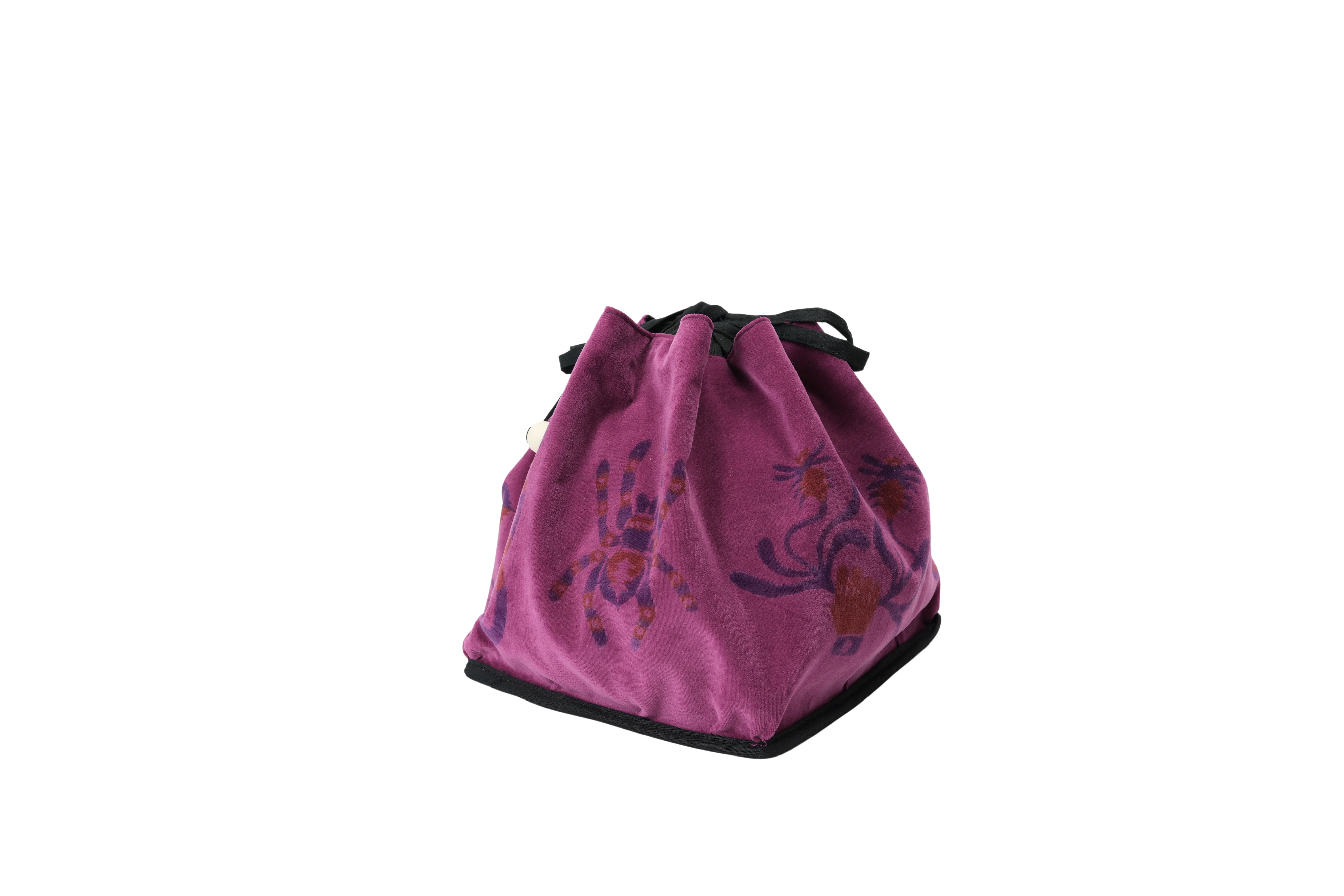 鮮やかなピンクの別珍生地に描かれているのは、蛇や昆虫や、少しクセのある植物。