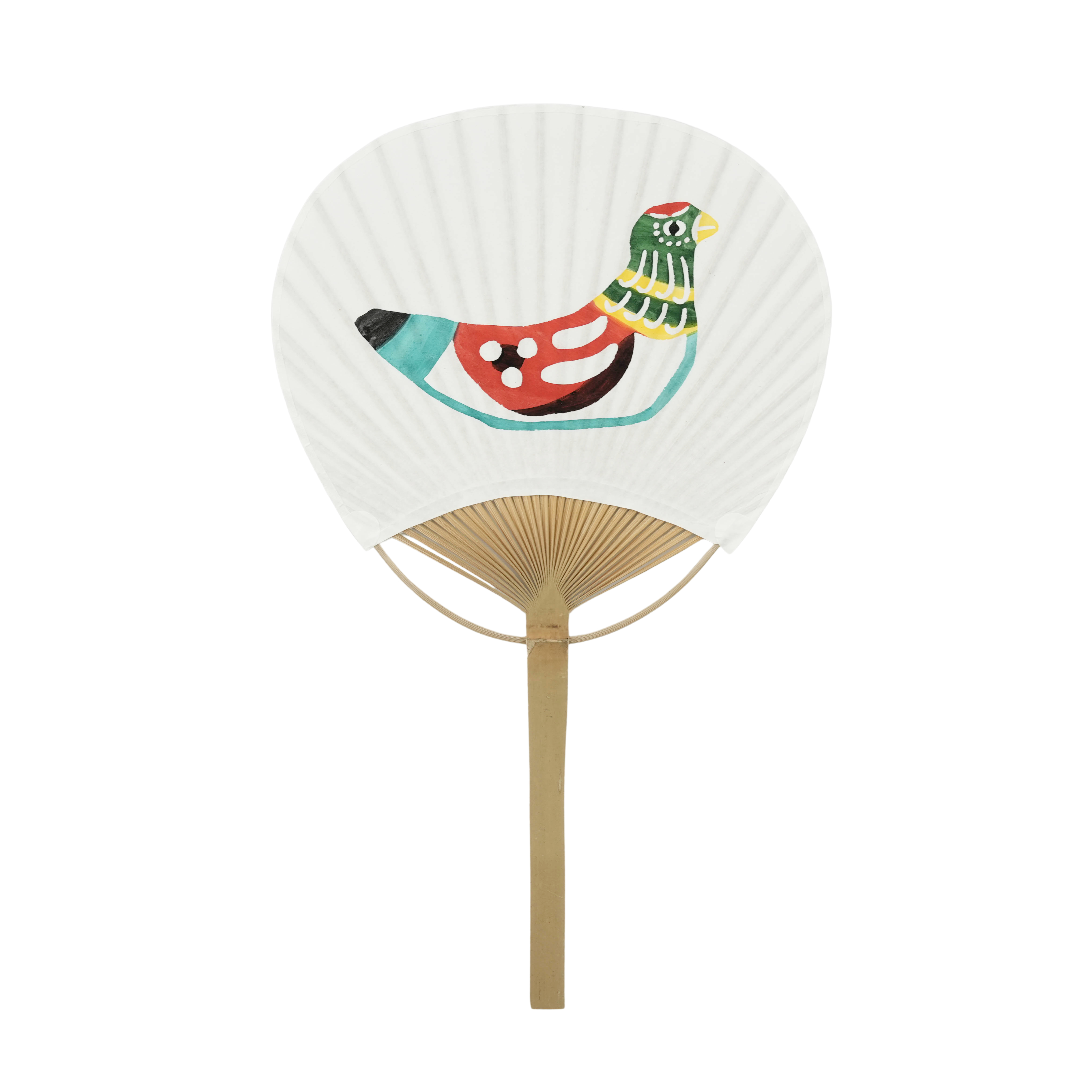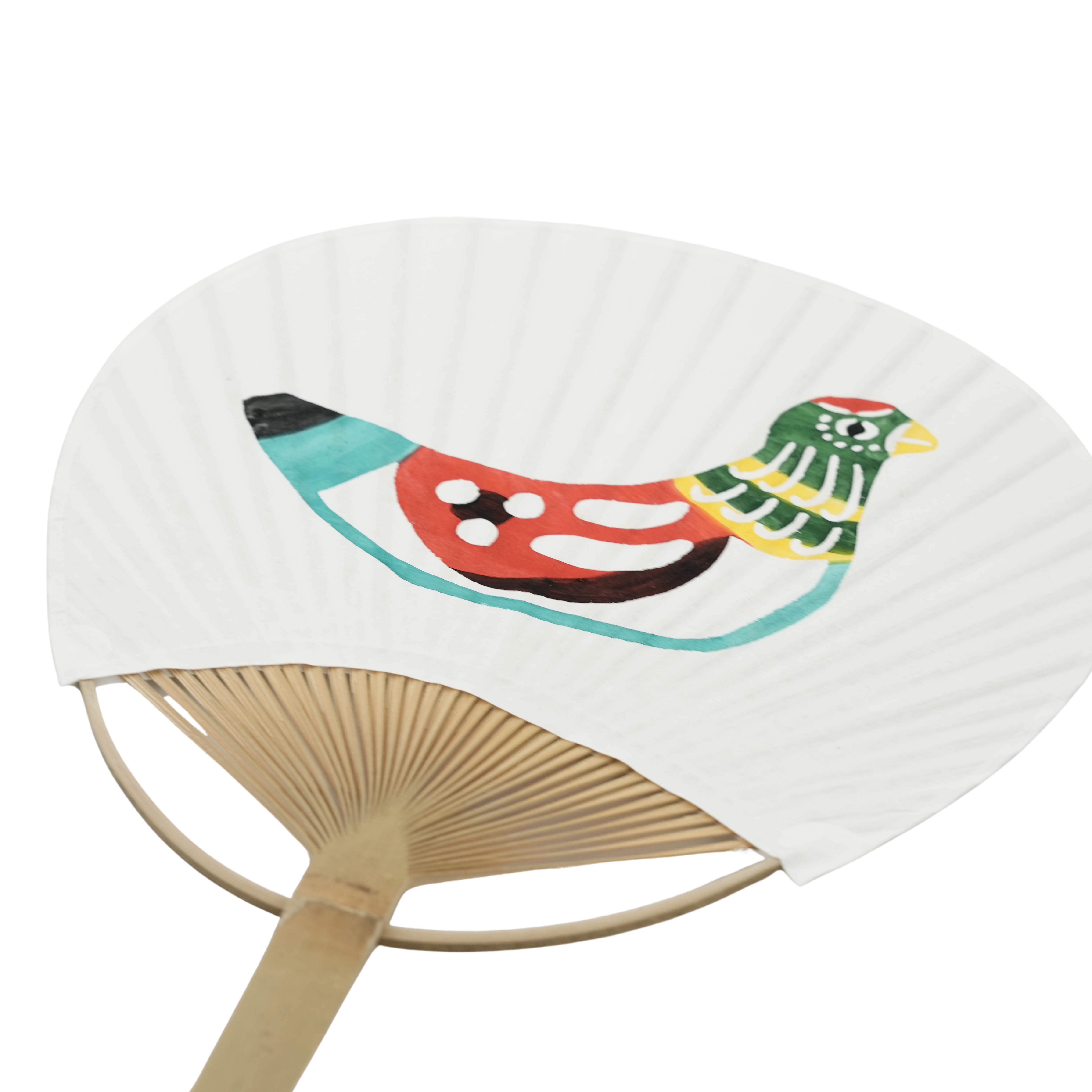 型染めうちわ|鳥の玩具と絶妙な色彩