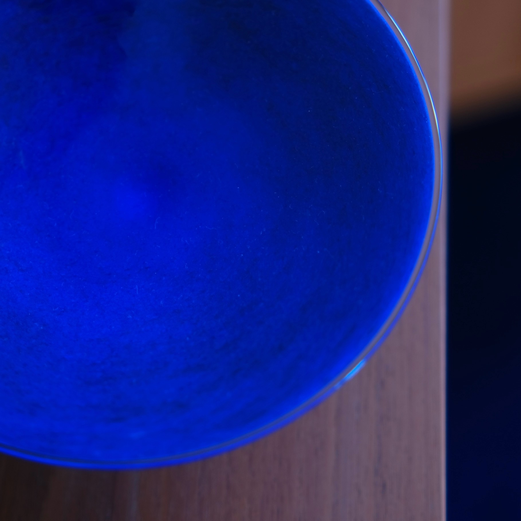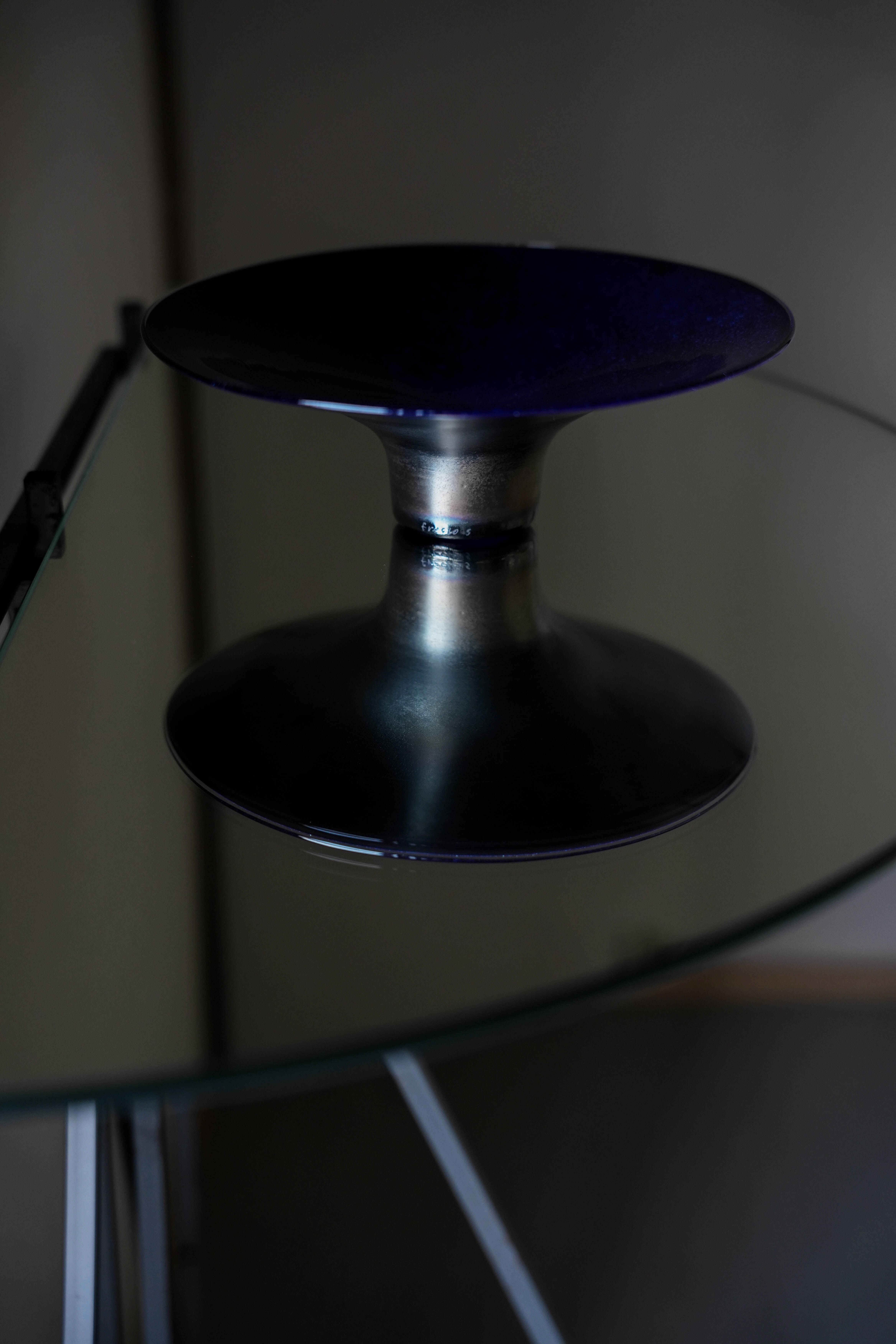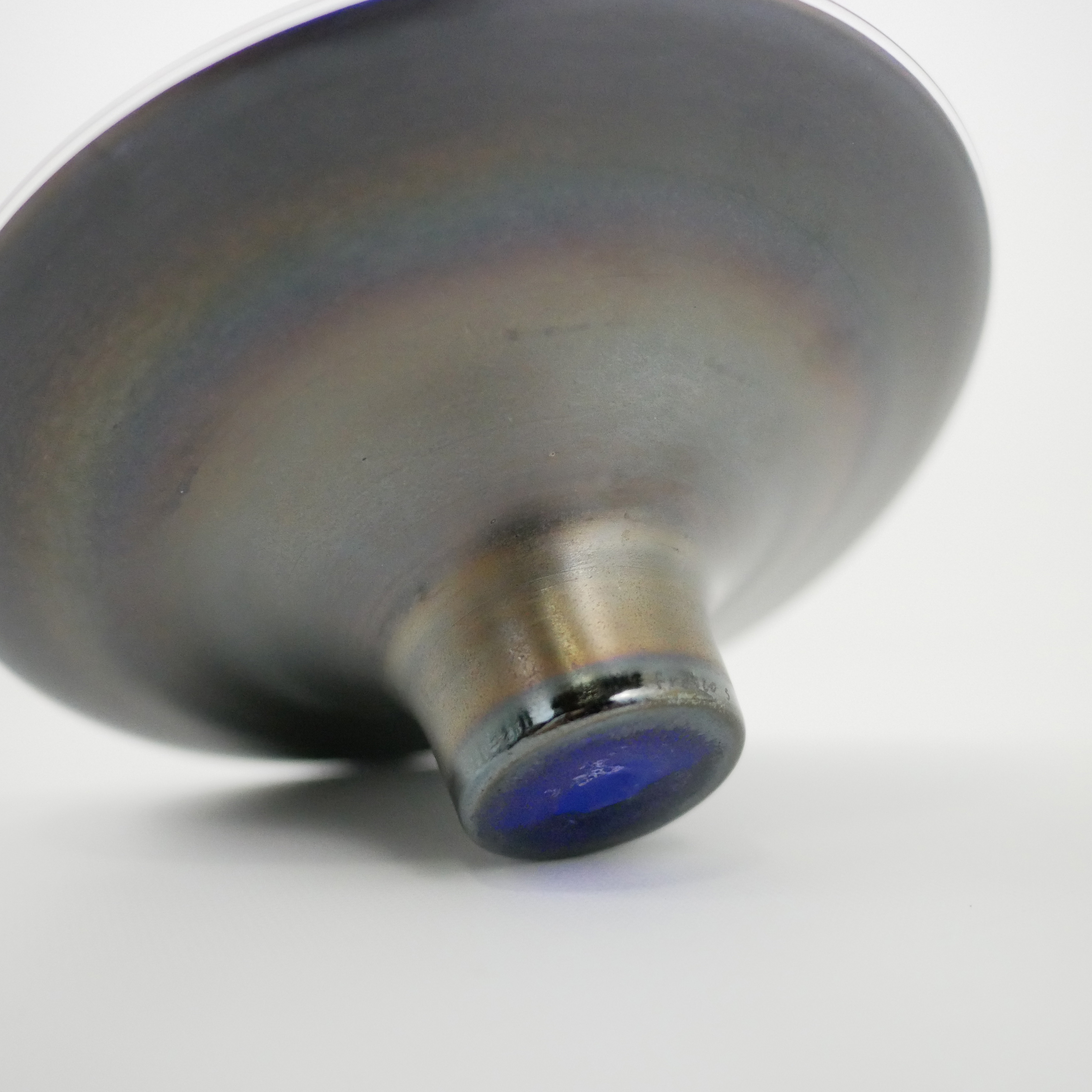 立ち上がった際、天面の深い青と、下部の燻しの光沢を、同時に愉しむことができます。