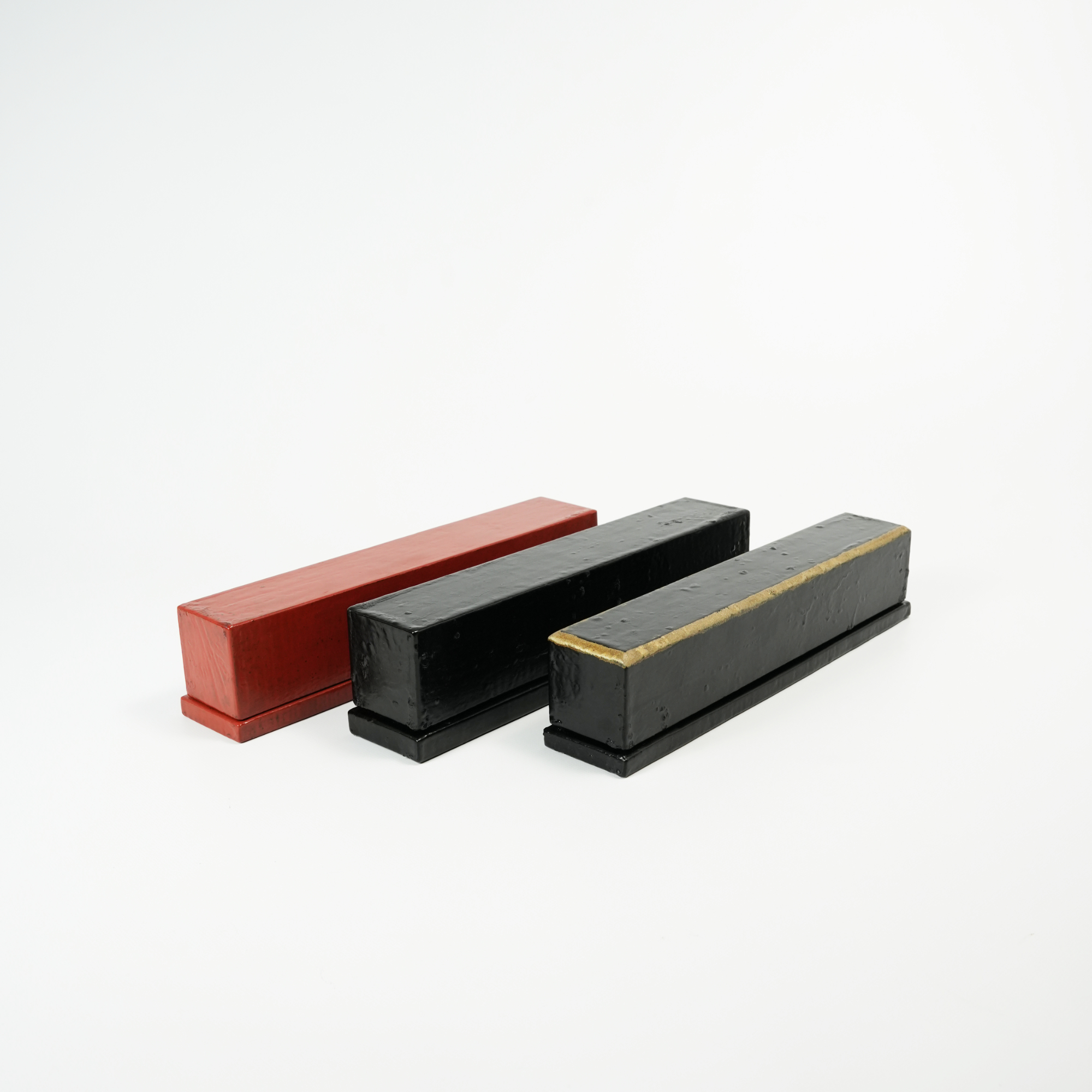 Matsuzaki’s work features a luxurious finish of approximately 20 hand-applied lacquer layers. By alternating cinnabar and black, he creates an extraordinary depth. Over years of use, the surface naturally wears to reveal hidden colors beneath, evolving into a one-of-a-kind expression unique to the owner.