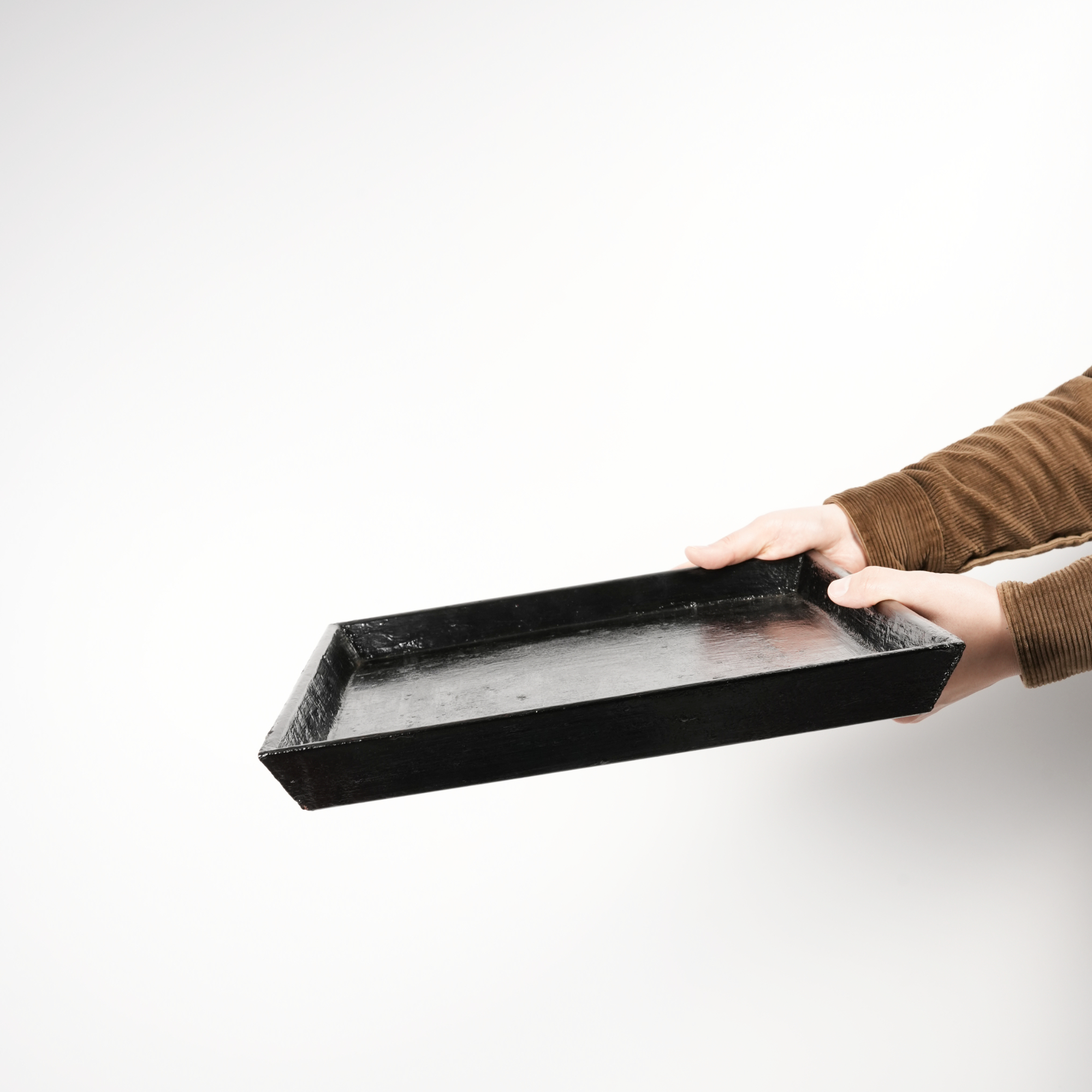 A large-sized tray with a commanding presence. Carved from a single block of wood, its powerful form vividly captures the artisan's masterful skill and the profound depth of the lacquer. The minimalist design, stripped of all ornament, allows the "Negoro" style—a beautiful transition of colors that emerges with time and use—to truly shine.